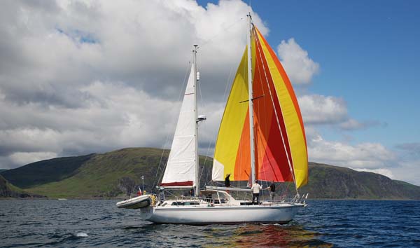 Clova has a well equipped galley with three burner cooker with oven and grill, as well as a fridge with separate 12 and 220v compressors. Her central heating system is fed to all cabins from the diesel powered heater. On deck all of Clova's 'standard' sails can be handed from the cockpit - the mainsail reefs within the mast, whilst the mizzen is conventional slab reefing and the genoa is furled by an electrically operated Bamar system. The main boom also has a boom brake gybe preventer fitted for extended passages downwind, and we can supply her with a spinnaker and/or cruising chute if required. All winches are accessible from the cockpit, where there is also a remote control for the electric anchor windlass and the control panel for the autopilot, as well as the controls for the bow-thruster. Like all of our boats she comes with complimentary outboard motor and tender, and all of the safety equipment required to comply with her Coding status. Clova's engine is a new Beta/Kubota four cylinder 75hp unit driving a three bladed propellor. The electrical system is 12 volt throughout, recharged by engine driven alternator and 220v battery charger for when alongside. The shorepower is also connected to an immersion heater for the hot water system. Clova has two sizeable battery banks, one of which (the domestic) has a capacity of over 850AH. This has allowed us to install a powerful 1600W inverter which provides 240v throughout the whole boat.